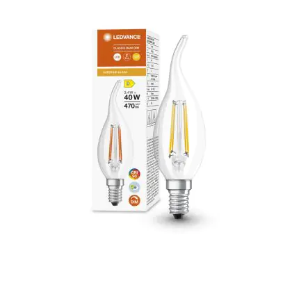 Die Ledvance Superior Classic LED E14 Fadenlampe Gedreht Kerze Klar 3.4W 470lm - 927 Extra Warmweiß | Dimmbar - Höchste Farbwiedergabe ist eine effiziente E14 LED-Lampe mit Retrodesign und der perfekte Ersatz für Ihre konventionellen 40W Lampen mit E14. Zudem strahlt sie Licht in der Farbtemperatur 2700K - Extra Warmweiß aus und punktet durch eine lange Lebensdauer.