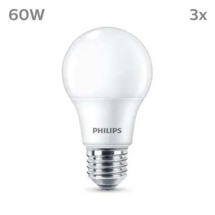 Die Mehrfachpackung 3x Philips Glühbirne LED E27 Birne Matt 8W 806lm - 827 Extra Warmweiß ist eine effiziente E27 LED-Lampe und der perfekte Ersatz für Ihre konventionellen W Lampen mit E27-Sockel. Zudem strahlt sie Licht in der Farbtemperatur 2700K - Extra Warmweiß aus und punktet durch eine lange Lebensdauer.
