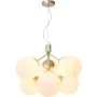 Bei der Pendelleuchte Ivona handelt es sich um eine Neuinterpretation eines klassischen Kronleuchters, wobei das traditionelle Design durch einen etwas organischeren und moderneren Look akzentuiert wird. Mit 6 Glaskugeln strahlt Ivona ein tolles Licht aus, das für einen modernen und extravaganten Stil sorgt. Die Kombination aus Messing und Opalglas schafft einen glamourösen und eleganten Designausdruck. Das Glas dieser Leuchte ist mundgeblasen und handgefertigt. Aufgrund dieses einzigartigen Verfahrens können im Glas Luftblasen entstehen und die Dicke des Glases kann ebenfalls variieren. Dies verleiht dem Glas seinen einzigartigen Charakter und sein lebendiges Erscheinungsbild.