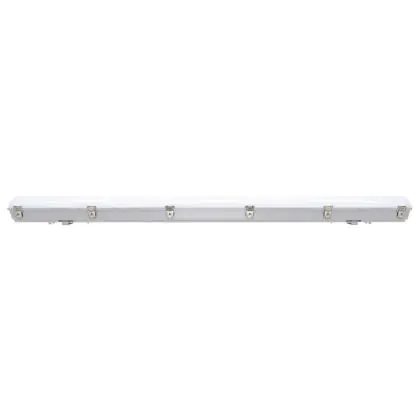Die Noxion LED-Feuchtraumleuchte der Reihe Pro ist 150 cm lang. Sie ersetzt zwei herkömmliche Leuchten à 58 Watt und benötigt dabei selbst lediglich 66 Watt. Diese LED hat eine tageslichtweiße Farbtemperatur (6.500 Kelvin) und ist über DALI dimmbar. Sie ist IP66- und IK08-klassifiziert und kann daher sowohl innen als auch außen verwendet werden. Dank der praktischen Durchgangsverdrahtung können Sie mehrere Leuchten miteinander verbinden.