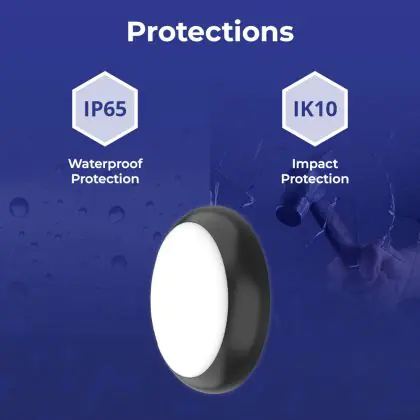 Die IK-Schutzklasse zeigt die Schlagfestigkeit einer Leuchte sowie den Schutz vor Vandalismus an. Sie wird in zwei Ziffern ausgedrückt (IK00 - IK10). Produkte mit IK00 sind somit nicht geschützt gegen Schläge oder Stöße jeglicher Art. Produkte mit IK10 bieten Schutz gegen Stöße von 20 Joule und sind gegen vandalismus-sicher.