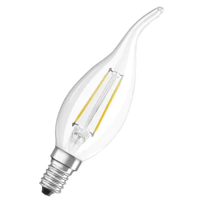 Die Osram Classic LED E14 Gebogen-tip candle Fadenlampe Klar 4W 470lm - 827 Extra Warmweiß | Dimmbar - Ersatz Für 40W ist eine effiziente E14 LED-Lampe mit Retrodesign und der perfekte Ersatz für Ihre konventionellen 40W Lampen mit E14. Zudem strahlt sie Licht in der Farbtemperatur 2700K - Extra Warmweiß aus und punktet durch eine lange Lebensdauer.