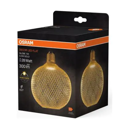 Die Osram Decor Eben Lamp In Metall Gehäuse LED E27 Globe Matt Gold 3.5W 300lm - 827 Extra Warmweiß | Ersatz Für 25W ist eine effiziente E27 LED-Lampe und der perfekte Ersatz für Ihre konventionellen 25W Lampen mit E27-Sockel. Zudem strahlt sie Licht in der Farbtemperatur 2700K - Extra Warmweiß aus und punktet durch eine lange Lebensdauer.