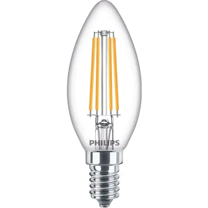 Die Philips Corepro LED Kerze E14 Fadenlampe Klar 6.5W 806lm - 840 Kaltweiß | Ersatz für 60W ist eine effiziente E14 LED-Lampe mit Retrodesign und der perfekte Ersatz für Ihre konventionellen 60W Lampen mit E14. Zudem strahlt sie Licht in der Farbtemperatur 4000K - Kaltweiß aus und punktet durch eine lange Lebensdauer.
