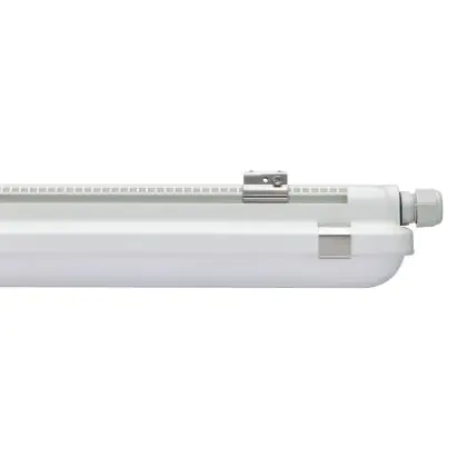 Die LED-Feuchtraumleuchte hat einen niedrigen Energieverbrauch von nur 28 Watt und ersetzt somit herkömmliche Leuchten mit zwei 36 W Fassungen. Aufgrund der höheren Effizienz sparen Sie rund 65 % Energiekosten ein.