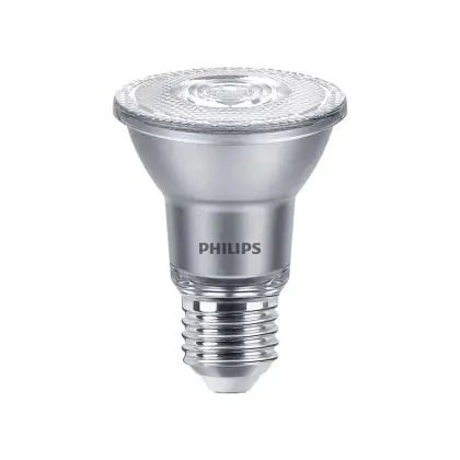 Der Philips Master Value LED Glühbirne Reflektor E27 PAR20 6W 515lm 25D - 930 Warmweiß | Höchste Farbwiedergabe - Dimmbar - Ersatz für 50W ist ein leistungsstarker LED-Strahler mit E27-Sockel. Er kommt mit einer hohen Lebensdauer von 25000 Stunden daher und spart Ihnen somit nicht nur Energie-, sondern auch Austausch- und Wartungskosten. Im Preis ist zudem eine All-In-Garantie von 5 Jahre enthalten.