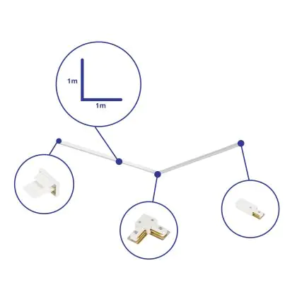 Beschreibung Rail Set 1-Phasen L 1 x 1 Meter Weiß | incl. Abschlusskappe, Stromanschluss und L -Verbinder