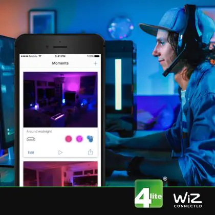 Da diese WiZ Smart Lampe über Wi-Fi funktioniert, benötigen Sie keinen externen Hub, um die Beleuchtung zu steuern. Sie müssen lediglich die WiZ App auf Ihrem Smartphone oder Tablet installieren. Die App ist im Google Play Store oder und im Apple Store verfügbar. Sobald Sie die Lampe angeschlossen haben, können Sie die Beleuchtung direkt per App oder Sprachfunktion jederzeit anpassen.